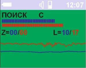 Данный режим предназначен для поиска и определения местоположения радиопередающих устройств (РПУ). Использование данного режима основано на визуальной оценке уровня сигналов посредством двух тридцати двух сегментных шкал. Шкалы отображает уровни постоянного и импульсного сигнала. Реализована индикация частоты стабильного сигнала. Обеспечена возможность акустического контроля посредством головных телефонов или встроенного излучателя.РЕЖИМ МОНИТОРИНГ